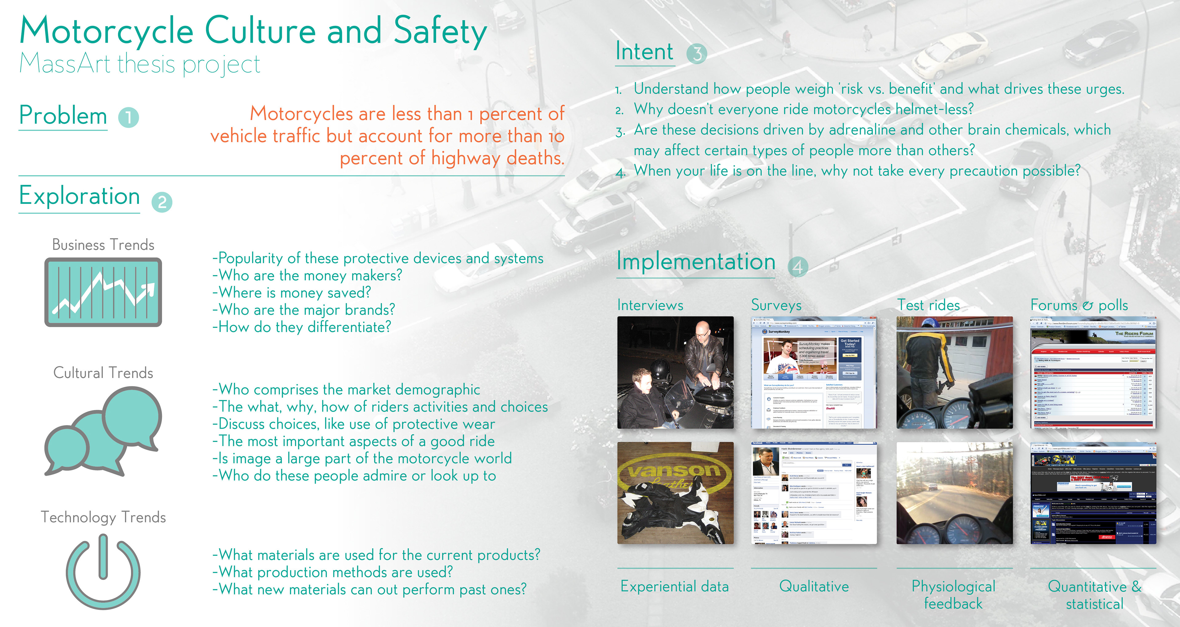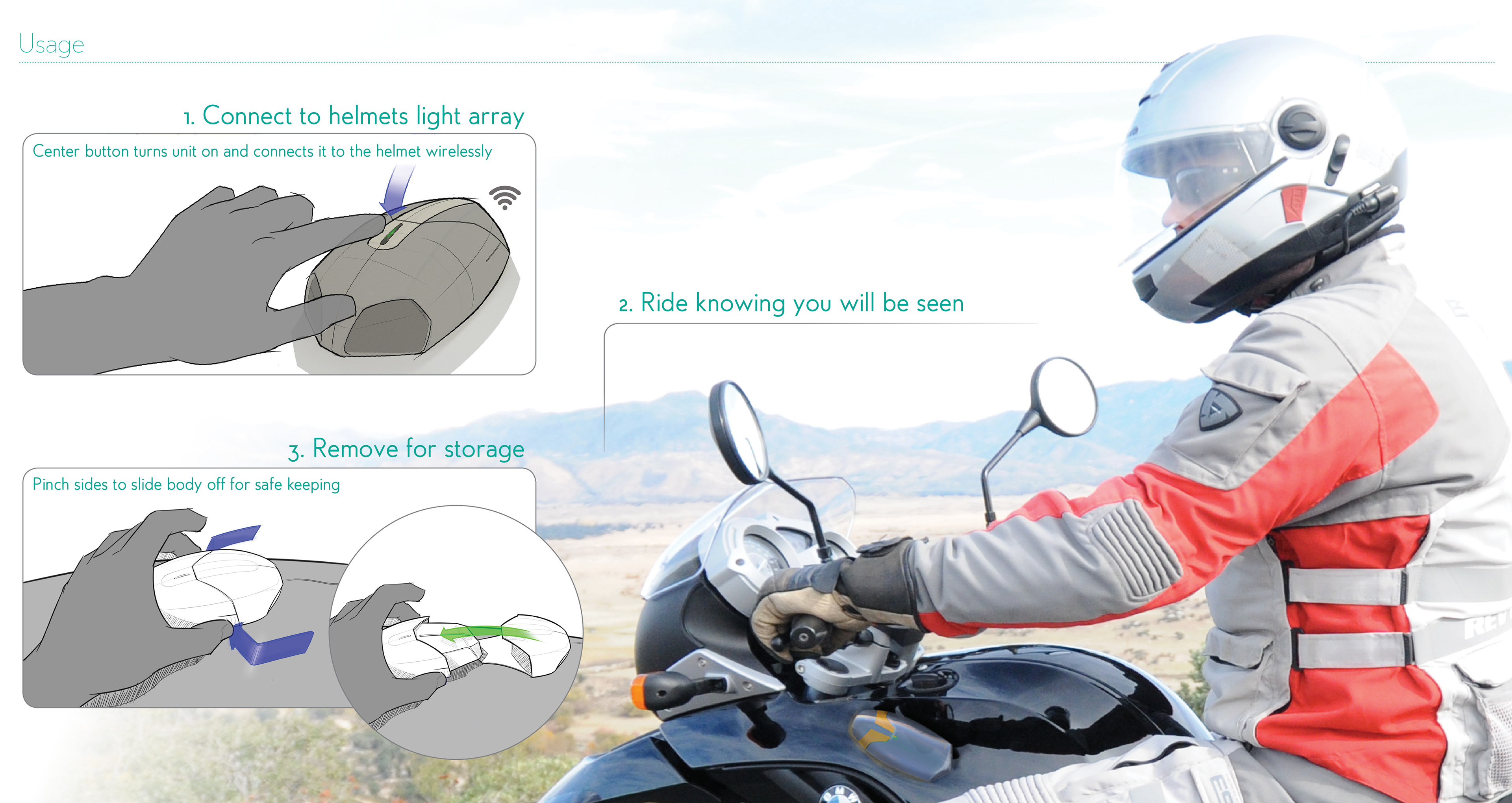 Research how motorcycle culture and safety are intertwined, and utilize these findings to develop an accepted device that improves rider safety.