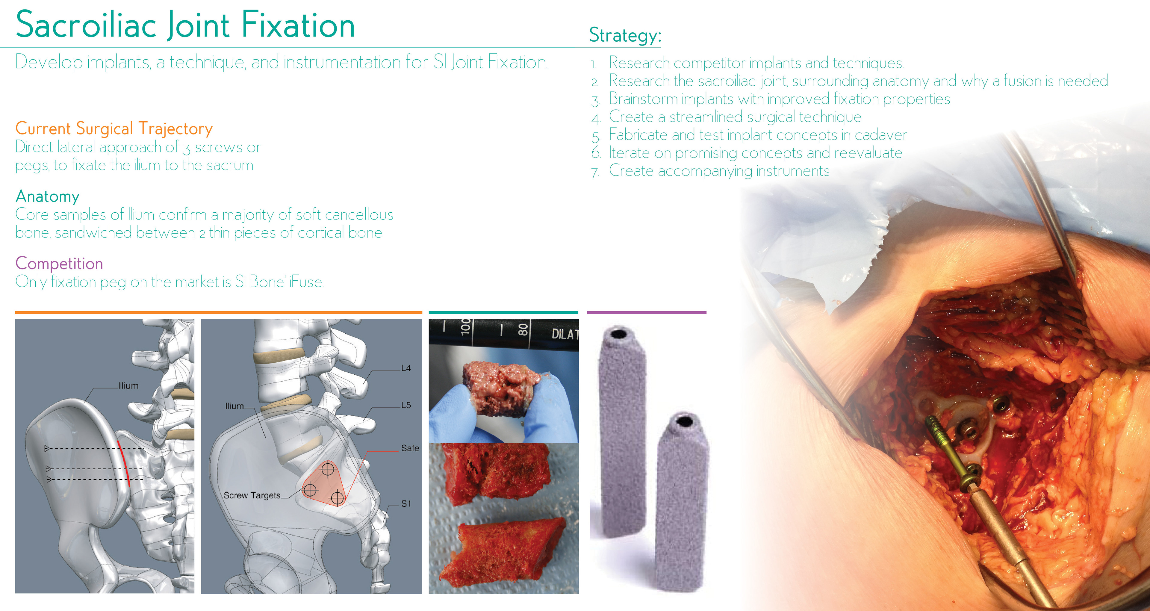 Develop implants, a technique, and instrumentation for sacroiliac-Joint Fixation.